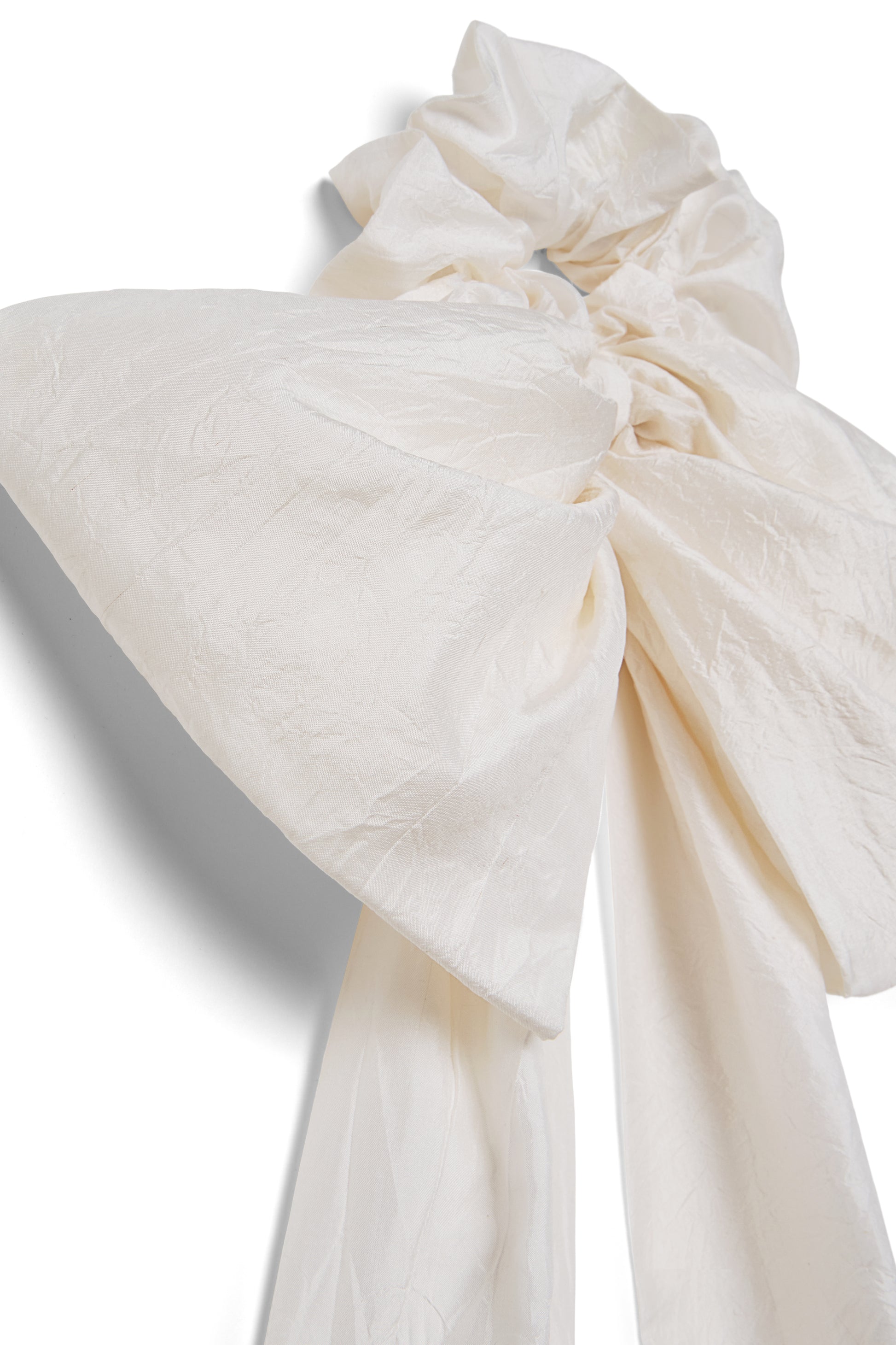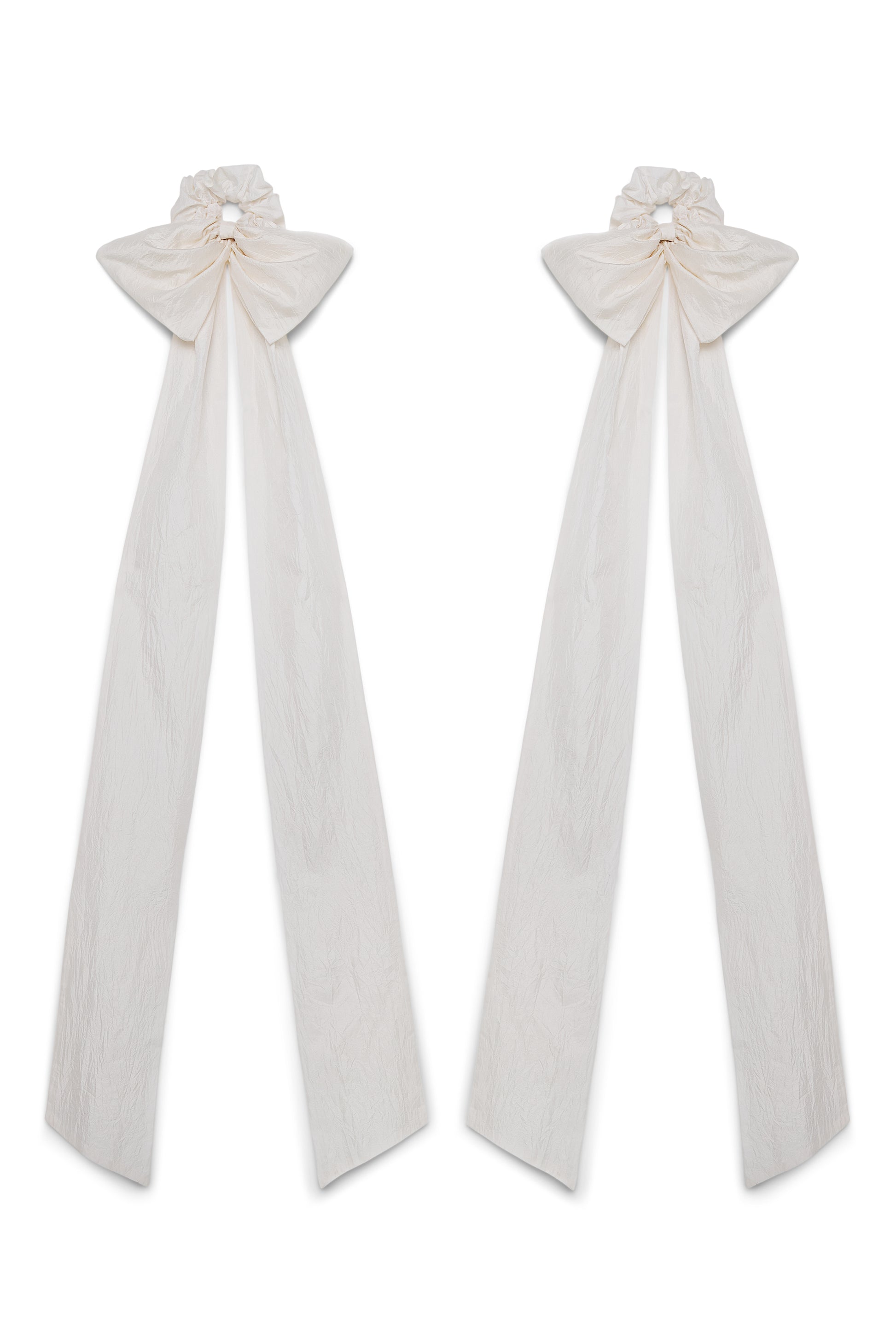 Add drama to any bridal or occasion look with our versatile 100% Silk arm bows. Crafted in the softest crushed silk taffeta from India, the bows sit on your arm with an elastic band that fits most. Bows drape and flutter as you walk to create an ethereal silhouette.