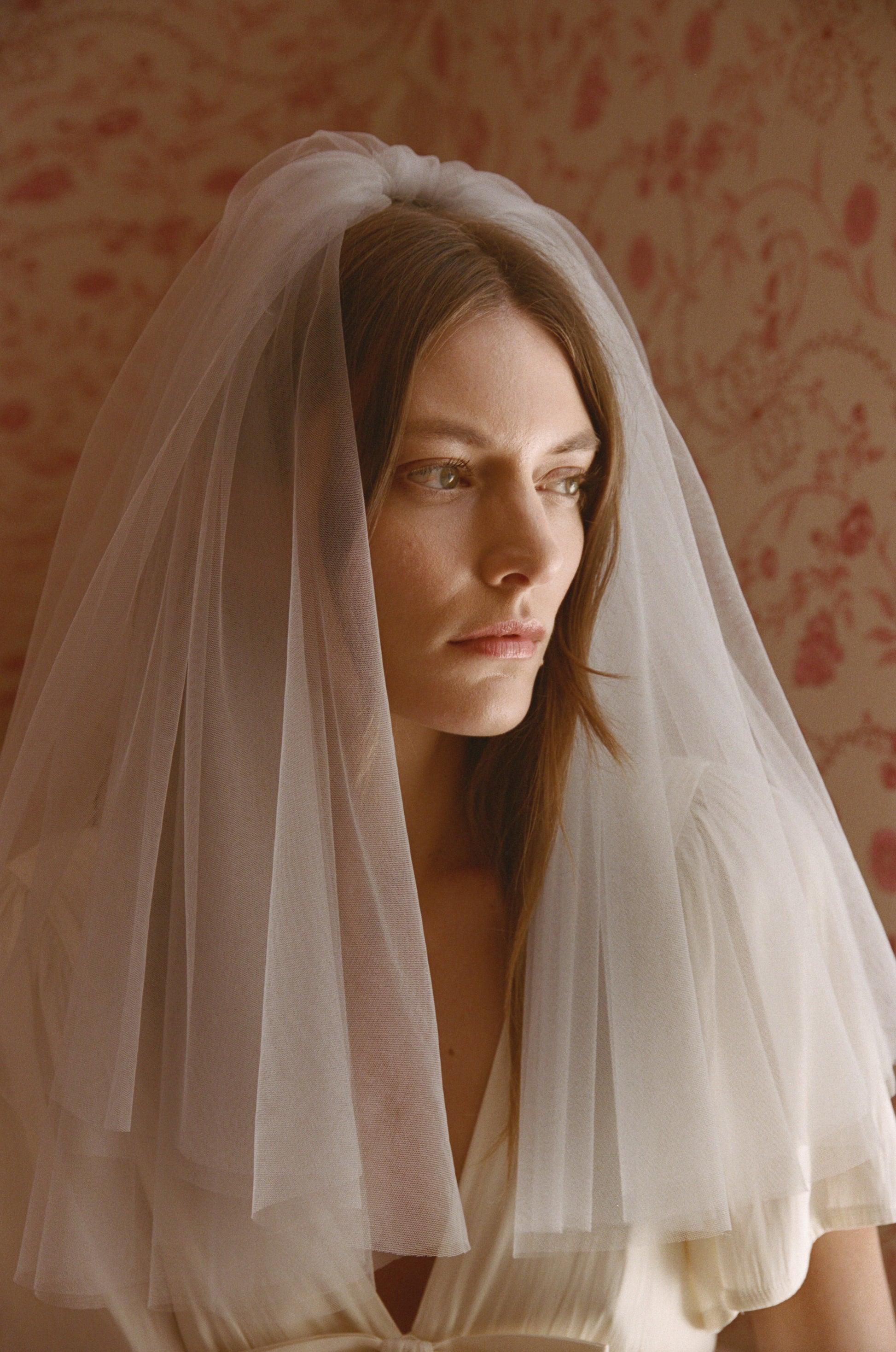 Our most petite veil, 19” of floating, voluminous tulle falls right at the shoulders for the chic and playful bride.