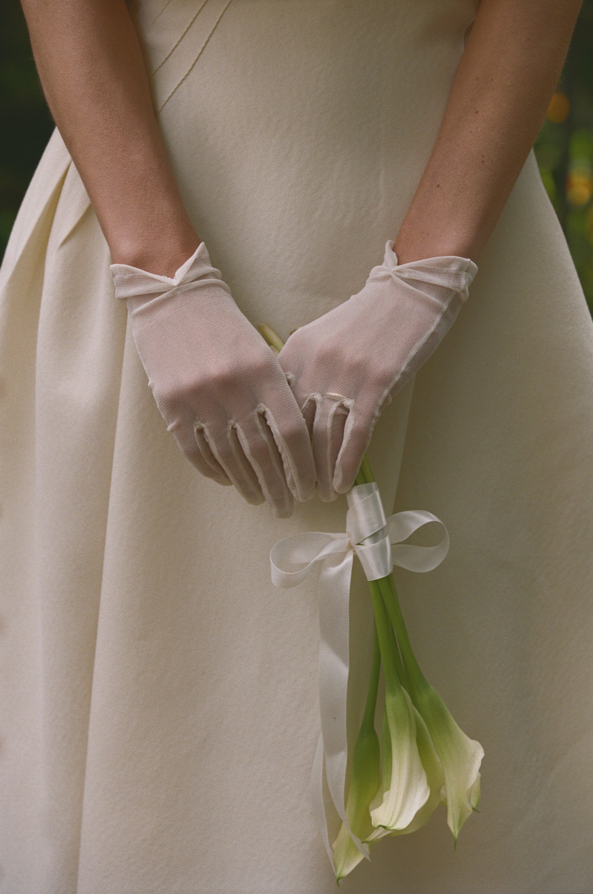 Our gloves are handmade in Los Angeles by one of the movie industry’s most sought after glove makers. Sewn in a delicate but flexible mesh tulle, the Gathered Wrist Glove highlights the wrist bone with a gathered detail at the center. They're the most perfectly understated, chic addition to your bridal look in Ivory and Vanilla or an Old Hollywood occasion statement piece in our alternate color ways.