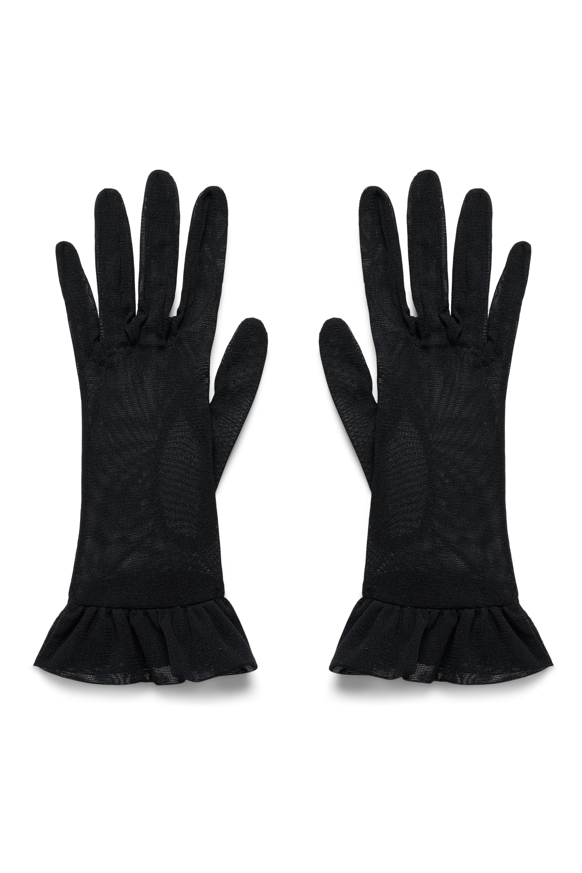 Our gloves are handmade in Los Angeles by one of the movie industry’s most sought after glove makers. Sewn in a delicate but flexible mesh tulle, the Ruffle Wrist Glove is both dainty and statement-making.