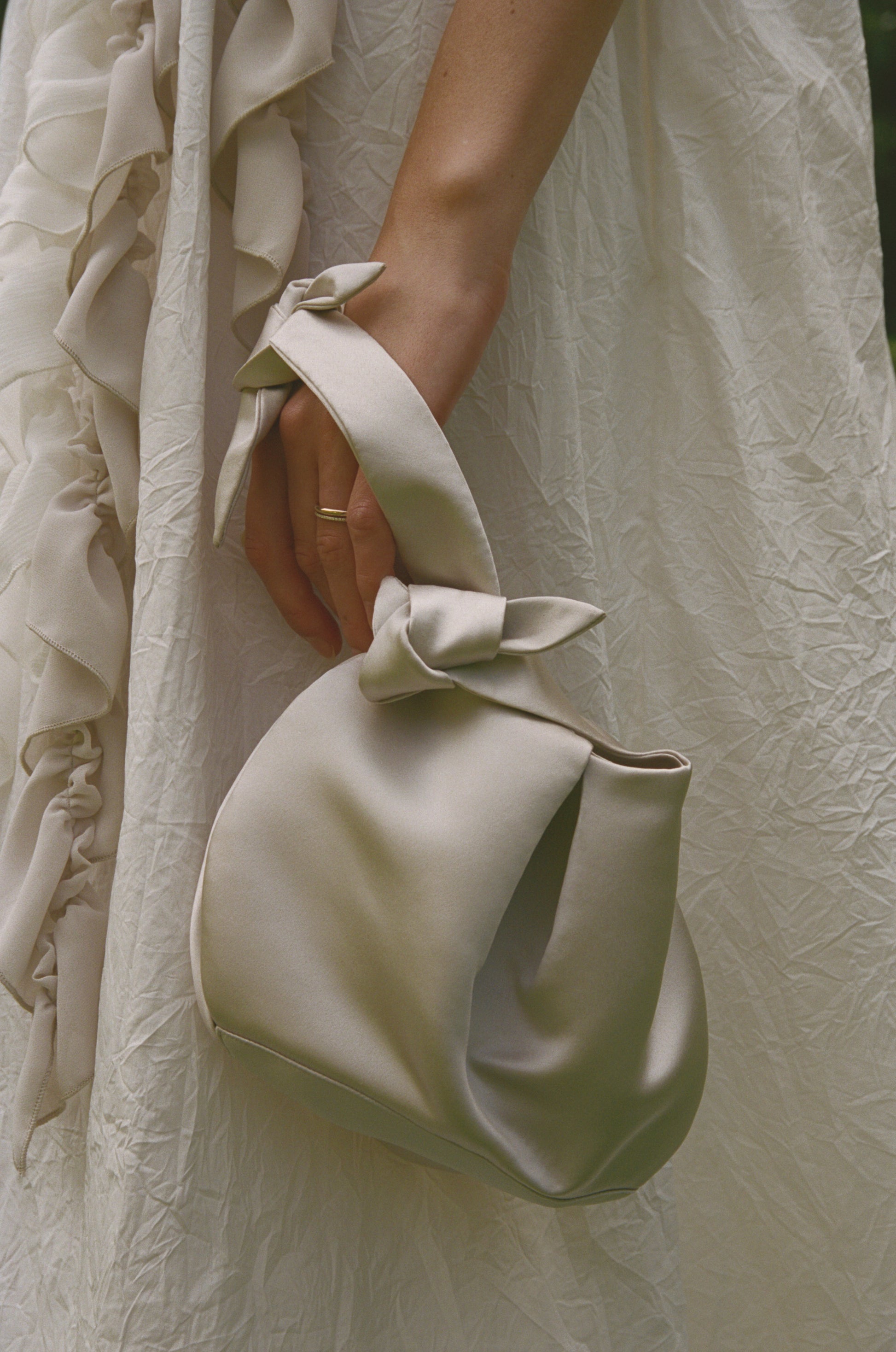 Inspired by the perfect wristlet found at a flea market in Italy, we updated the pattern to feature origami-like folds and adjustable ties at wrist to allow for ease, comfort and convertible wear. The Swan Wristlet is versatile enough to be your go-to occasion staple for any event or your daily driver mini bag.