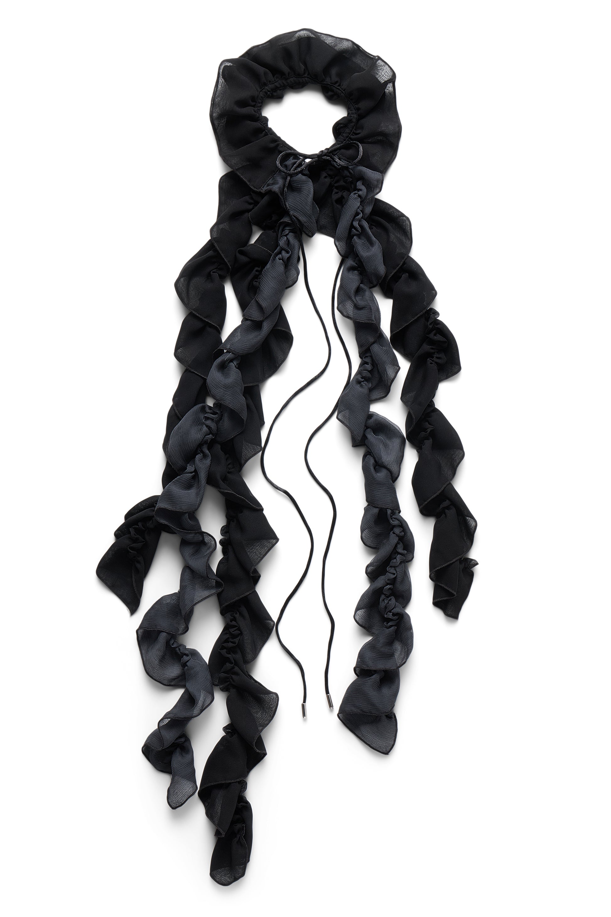 Draped layers of ethereal chiffon crafted from deadstock fabric with an adjustable tie at the neck.